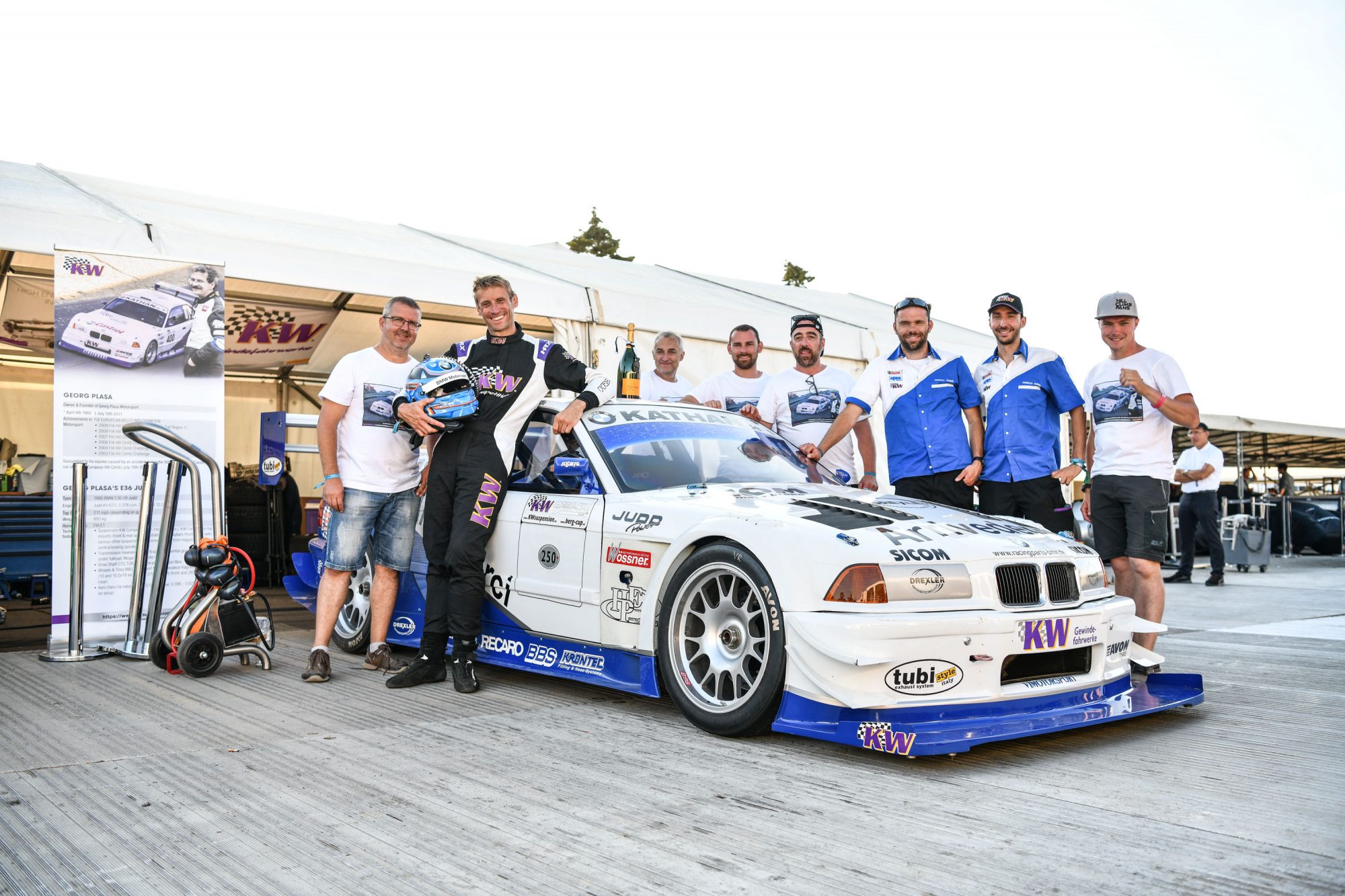 Some words from KW Suspensions founder Klaus Wohlfarth on the moment: “We did for it Georg and we never expected getting so far in Goodwood. Every day Jörg was getting faster it was for us in a certain way like Georg was with us. I hope he saw what we tried to do for him and for the whole hillclimb scene. This 3rd place with a privately engineered car with its roots as a series car from 1990 is unbelievable. We came to give Georg the run up the Goodwood hill he always wanted to do himself and none of us could have predicted this result, even with a driver like Jörg. To get on the podium in this exalted company and be the fastest fuel car at this year’s event is the finest tribute we can make to our friend.”